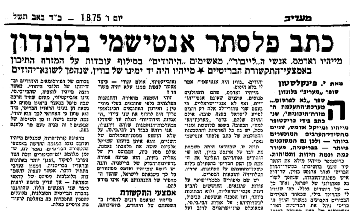 [10] יוסף פינקלסטון "כתב פלסתר אנטישמי בלונדון" מעריב 26 (1.8.1975).